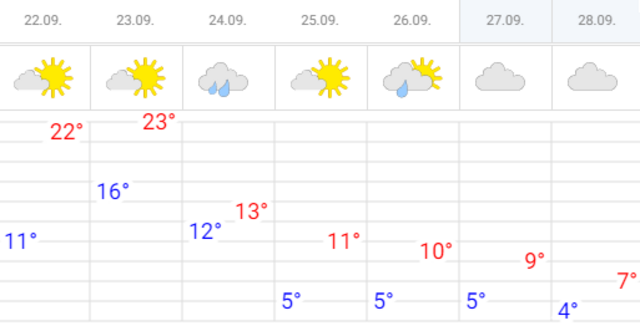 Юнкун вара пӗлӗтленӗ, вырӑнӑн-вырӑнӑн ҫумӑр ҫӑвӗ, кӑнтӑрла 10-15 градус ӑшӑ пулӗ. Кӗҫнерникун термометр 8 градус кӑна ӑшӑ кӑтартӗ.