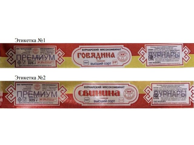 Ку тушенкӑна пырса тивет. Йошкар-Олари комбинат палӑртнӑ тӑрӑх, хӗрлӗ-сарӑ йӗрлӗ этикеткӑсемпе малтан вӗсем усӑ курма пуҫланӑ, ҫакна йӗркепех ҫирӗплетнӗ. Анчах Вӑрнарти комбинат та ҫавнашкалтарах этикеткӑсемпе усӑ курнӑ.