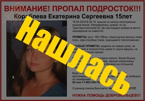 Шупашкарта ҫухалнӑ Катя Кораблевӑна шырама чарӑннӑ. 15 ҫулти хӗрача паян, ака уйӑхӗн 23-мӗшӗнче, киле таврӑннӑ.
