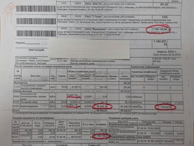 Шупашкарта пурӑнакан ватӑран ҫурт-йӗрпе коммуналлӑ хуҫалӑха тытса тӑракан компанисенчен пӗри миллион тенкӗ ыйтса квитанци ярса панӑ.