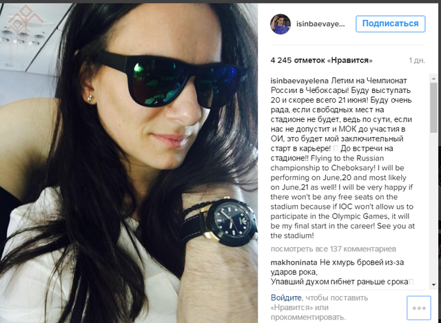 Олимп вӑййисен икӗ хут чемпионки Елена Исинбаева унта хутшӑнасси пирки унчченех пӗлтернӗччӗ. Спортсменка Шупашкара ҫитнӗ ӗнтӗ. Кун пирки вӑл хӑйӗн официаллӑ страницинче пӗлтернӗ.