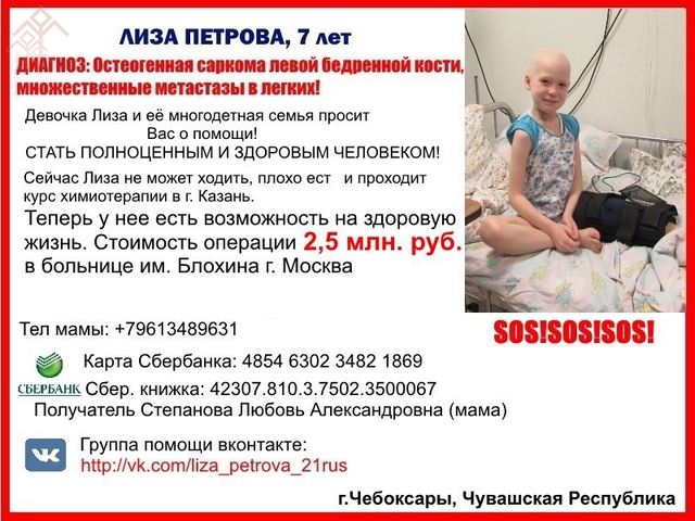 Пӗчӗк Лиза Петрова йывӑр чирӗпе 10 уйӑх ытла кӗрешет. Вӑл чылай сипленнӗ, темиҫе операци тӳссе ирттернӗ. Анчах лару-тӑру лайӑх еннех улшӑнман-ха.