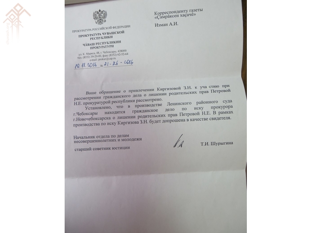 Ачине ыррӑн пӑхман амӑшне амӑш правинчен хӑтарассипе ҫыхӑннӑ ӗҫ суда ҫитнӗ. Хаҫатри материал авторӗ Алина Изман пӗлтернӗ тӑрӑх, кипкери ачаран пуҫласа виҫӗ ҫула ҫитиччен пӑхнӑ няньӑна суда кӳнтелен пулса та чӗнмен. Мӗншӗн аплине пӗлес тесе журналист республика прокуратурине ҫыру шӑрҫаланӑ. ЧР прокуратурин ҫул ҫитменнсиемпе тата ҫамрӑксемпе ӗҫлекен пай пуҫлӑхӗ Тамара Шурыгина ачана пӗчӗкрен пӑхса пурӑннӑ хӗрарӑма суда кӳнтелен евӗр чӗнессине пӗлтернӗ. Суд ларӑвӗ чӳк уйӑхӗн 29-мӗшӗнче иртмелле.