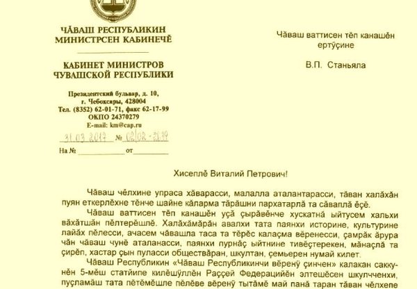 Хастарсем Михаил Игнатьевран патшалӑх тата муниципалитет служащийӗсен хушшинче чӑваш чӗлхине пӗлнипе пӗлменнине мониторинг тума ыйтнӑ. Кун валли диктант е тест ҫырмалла.