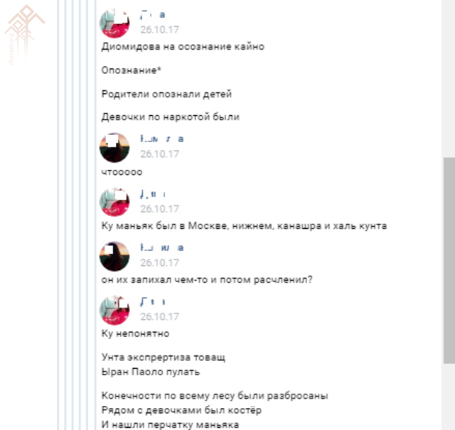 Унта пӗлтернӗ тӑрӑх, ҫав маньяк темиҫе хӗре вӗлернӗ. Вӑрманта вӗсен виллин пайӗсене тупнӑ-мӗн, юнашар кӑвайт ҫуннӑ. Ҫавӑнтах маньякӑн перчеткине тупнӑ имӗш.