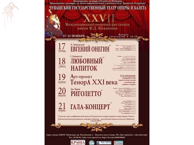 Паян Чӑваш Енӗн тӗп хулинче Пӗтӗм тӗнчери опера фестивалӗ черетлӗ хутчен уҫӑлнӑ. Ӑна, аса илтерер, Максим Михайлова халалланӑ.
