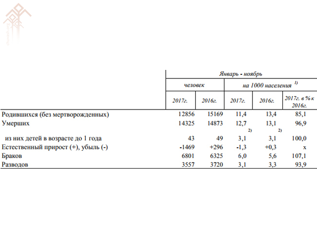 Чӑвашстатӑн официаллӑ даннӑйӗсене ӗненес тӗк, кӑҫал 2313 ача сахалрах ҫуралнӑ. Пӗлтӗрхипе танлаштарсан, ку кӑтарту 15,2 процент сахалрах. Ҫапах савӑнтараканни те пур: вилнисен йышӗ чакнӑ, кӑҫал 548 ҫын сахалрах пурнӑҫран уйрӑлнӑ. Анчах ҫын вилеслӗхӗ ача ҫураласлӑхӗнчен пӗчӗк мар: вилекенсен йышӗ, ҫут тӗнчене килнисемпе танлаштарсан, 11,4 процент нумайрах.