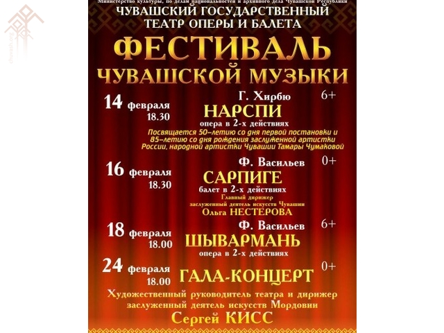 наци хайлавӗсене кӑмӑллакан ентешӗмӗрсене, Чӑваш патшалӑх оперӑпа балет театрӗ ҫак кунсенче Чӑваш кӗввин фестивалӗпе савӑнтарчӗ. Нарӑс уйӑхӗн 14-мӗшӗнче пуҫланнӑ культура мероприятийӗн программине опера та, балет та кӗртнине Чӑваш халӑх сайчӗ пӗлтернӗччӗ. Фестиваль, аса илтерер, «Нарспи» оперӑпа уҫӑлчӗ. Куракансем тепӗр икӗ кунтан «Сарпике» балетпа киленчӗҫ. 1970 ҫулта пуҫласа лартнӑ пӗрремӗш чӑваш балетне халӑх паян та ӑшшӑн йышӑнать. Нарӑсӑн 18-мӗшӗнче театрта «Шывармань» опера кӑтартрӗҫ.