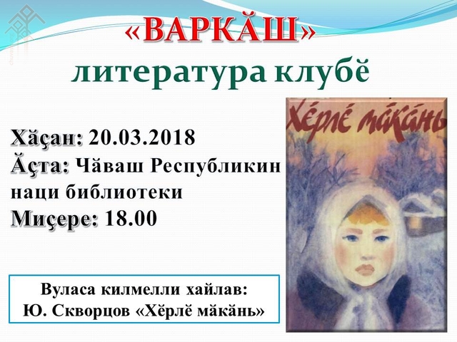 «Варкӑш» ҫамрӑксен литература клубӗ хӑйӗн ӗҫне малалла тӑсать. Иртнинче, шучӗпе тӑваттӑмӗш хут пуҫтарӑннинче, Арсений Тарасов ҫыравҫӑн, драматургӑн «Вӗлтӗртетсе вӗҫет сарӑ ҫулҫӑ» повеҫне пӑхса тухнӑччӗ. «Варкӑш» клубӑн черетлӗ вулав каҫӗ каллех Чӑваш Енӗн Наци вулавӑшӗнче иртӗ. Пуш уйӑхӗн 20-мӗшӗнче Юрий Скворцовӑн «Хӗрлӗ мӑкӑнь» повеҫне сӳтсе явӗҫ.