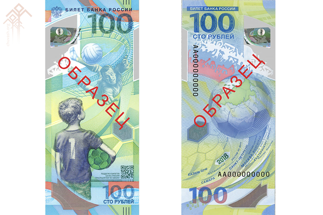 Ҫу уйӑхӗн 22-мӗшӗнче Раҫҫей банкӗ Футбол енӗпе иртекен тӗнче чемпионатне халалласа укҫа кӑларнӑ. Вӑл — полимертан. Банкнота номиналӗ – 100 тенкӗ. Тираж 20 миллиона яхӑн экземпляр тесе пӗлтереҫҫӗ.