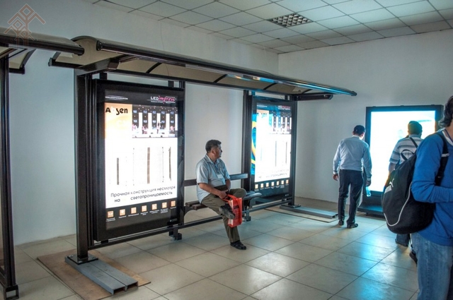 Павильонсем ятарлӑ алюмини профилӗнчен пулӗҫ, вӗсем ҫине пӗлтерӳсем ҫыпӑҫмӗҫ, граффити лармӗ. Конструкци вӑйлӑ ҫиле, ҫил-тӑмана чӑтӗ.