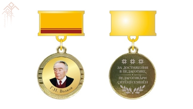 Кӑкӑр ҫине ҫакмалли паллӑ ылтӑн тӗслӗ, ҫаврака пулӗ. Пиччен енче ӑсчах-педагогӑн, педагогика ӑслӑлӑхӗсен докторӗн Геннадий Волковӑн сублимаци пичечӗ пулӗ. Ҫак паллӑпа пӗрле удостоверени парӗҫ.