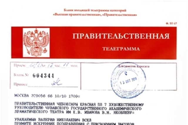 Валерий Яковлева (вӑл — Чӑваш патшалӑх академи драма театрӗн илемлӗх ертӳҫи тата тӗп режиссерӗ) пысӑк наградӑпа РФ культура министрӗ Владимир Мединский телеграмма янӑ, чунтан саламланине палӑртнӑ.