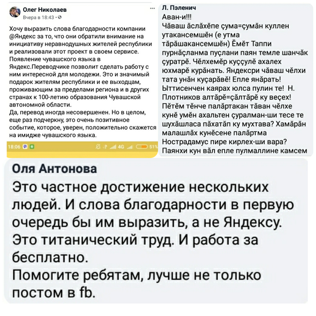 Чӑваш Ен Элтеперӗн тивӗҫӗсене вӑхӑтлӑх пурнӑҫлакан Олег Николаев чӑваш чӗлхине Яндекс.Тӑлмача кӗртнине пысӑка хурса хакланӑ. Тав сӑмахне вӑл Фейсбукри хӑйӗн страницине вырнаҫтарнӑ.