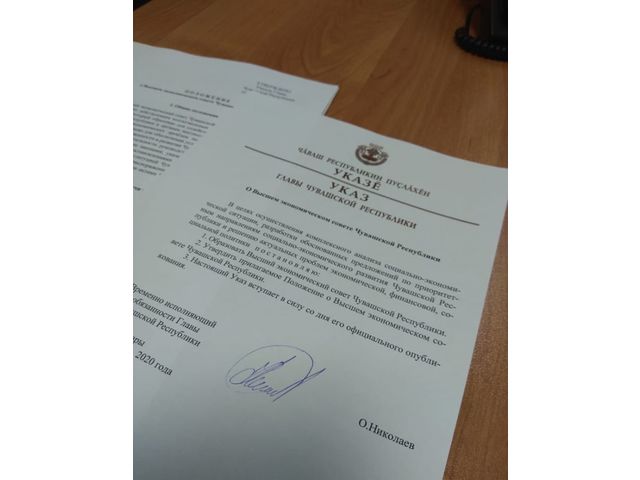 Чӑваш Енре Аслӑ экономика канашӗ ӗҫлеме тытӑнӗ. Ҫакӑн пирки Чӑваш Ен Элтеперӗн тивӗҫӗсене вӑхӑтлӑх пурнӑҫлакан Олег Николаев Фейсбукра пӗлтернӗ. Хушӑва вӑл ӗнер, нарӑс уйӑхӗн 20-мӗшӗнче, алӑ пуснӑ.
