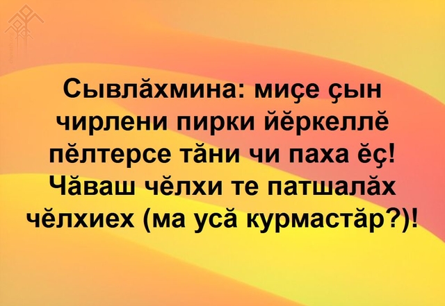 Сӑмах май вырнаҫтарнӑ та иккен: www.youtube.com/watch?v=VOIbLDK4uBU