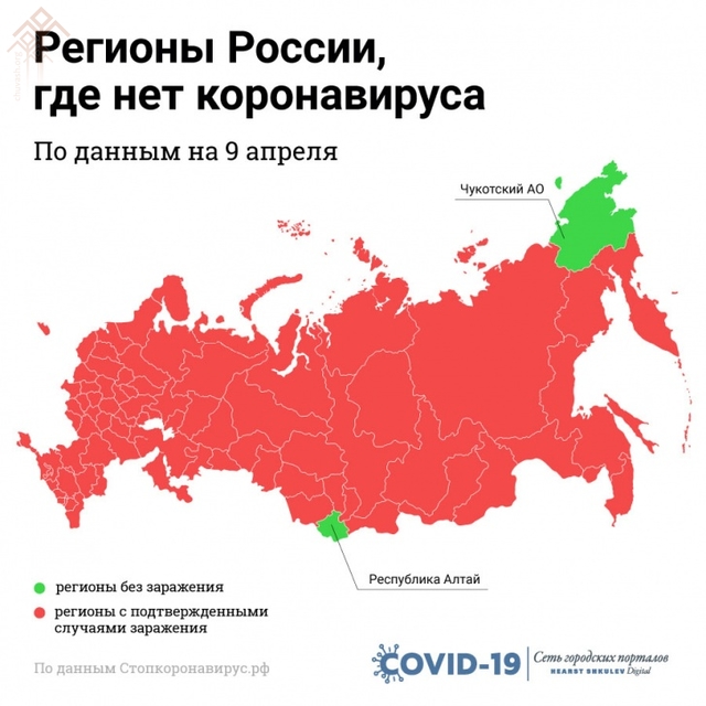 Кӑшӑлвирус тупман регионсен йышӗ иккӗ юлнӑ. Алтай Республики тата Чукотка автономи округӗ.