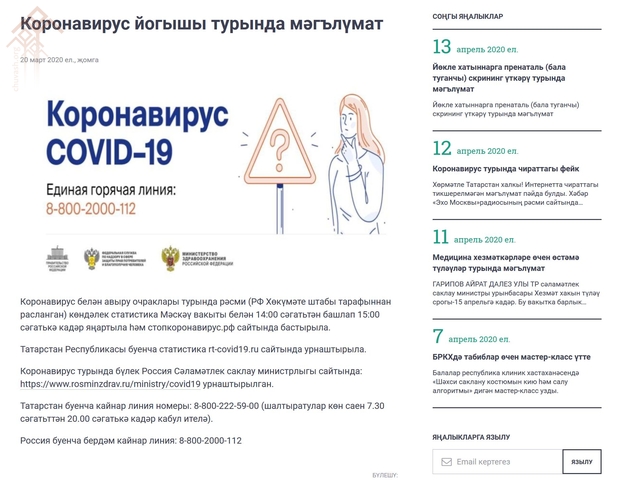 Тутарстанра кӑшӑлвирус пирки хӑйсен тутар патшалӑх чӗлхипе хыпарласа тӑма пӗрре те (именсе, вӑтанса, йӗренсе) тӑмаҫҫӗ!