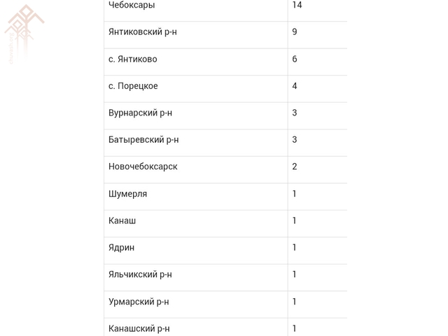 Кӳршӗсене илес пулсан — Чулхула облаҫӗ +30 (224), Мӑкшӑ республики +16 (58), Чӗмпӗр облаҫӗ +16 (86), Тутарстан +11 (84), Мари Эл +10 (80). Пуринче те пур, никама та айккинче хӑварман.