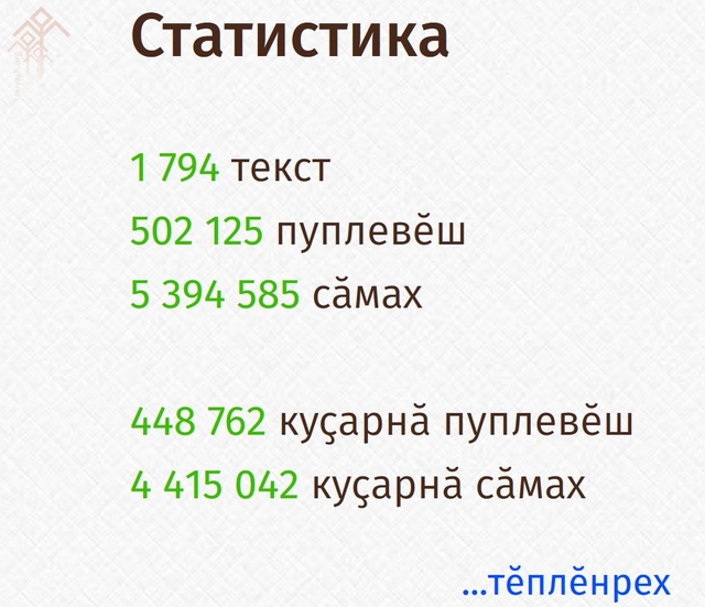 Чӑваш чӗлхи лабораторийӗнчен те республикӑмӑра парне пултӑр — «Чӑваш чӗлхин икчӗлхеллӗ ҫӳпҫинче» паянтан 500 пин ытла пуплевӗш! Ку ӳсӗме Сергей Баруздинӑн «Пӗр ҫулпах» романӑн (чӑвашла Александр Галкин куҫарнӑ) сыпӑкне кӗртнӗ хыҫҫӑн ҫитрӗмӗр.