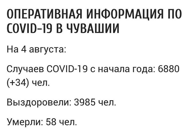 Ҫурла уйӑхӗн 4-мӗшӗ тӗлне илсен пирӗн республикӑра кӑшӑлвирус диагнозӗллӗ тата тепӗр икӗ ҫын вилнӗ. Ҫапла вара ҫулталӑк пуҫланнӑранпа 58 ҫын пурнӑҫӗ татӑлнӑ.
