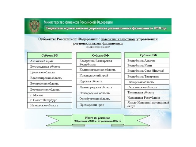 Чӑваш Ен тӑваттӑмӗш ҫул ӗнтӗ укҫа-тенкӗ тытассин пахалӑхӗпе Раҫҫейри малта пыракан регионсен шутне кӗрет. Республикӑн Финанс министерстви пӗлтернӗ тӑрӑх, иртнӗ ҫул регионсем епле ӗҫленине ҫӗршывӑн Финанс министерстви пӗтӗмлетнӗ.