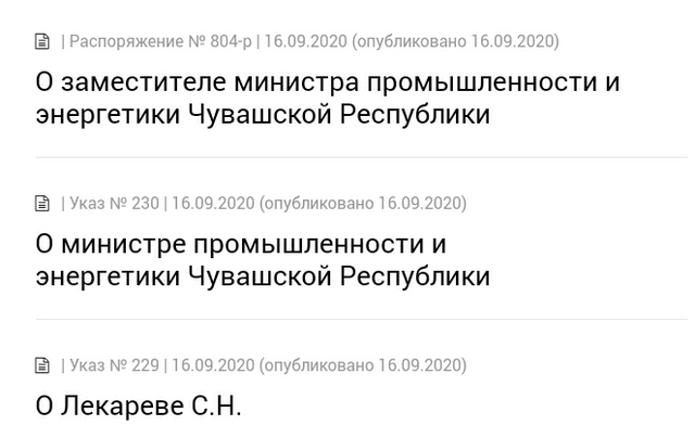 Тепӗр йышӑну та пур унта. Маларах асӑннӑ Сергей Лекаревпах ҫыхӑннӑ вӑл. Ӑна промышленность тата энергетика министрӗн ҫумӗ пулма шаннӑ.