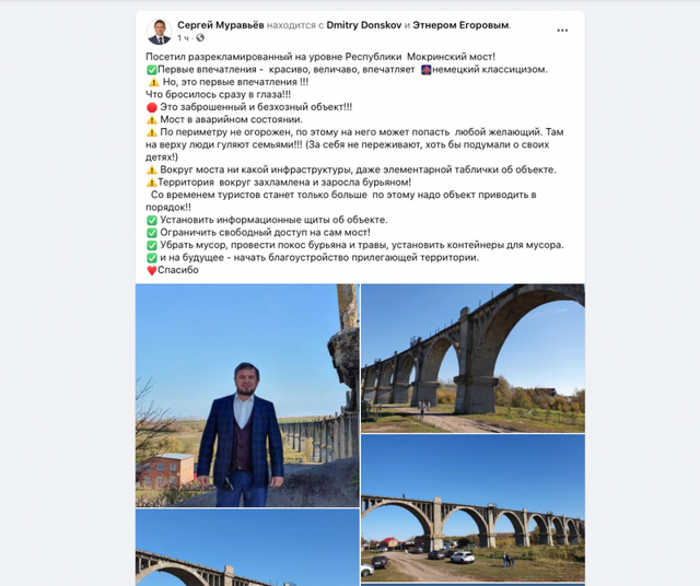 Нумаях пулмасть Шупашкар хулин депутатсен пухӑвӗн депутачӗ Сергей Муравьев Канаш районӗнчи Мӑкӑр ялӗнчи кӗпер патне ҫитсе курнӑ. Сӑмах май, унта ЧР Элтеперӗ Олег Николаев пулнӑ, кӗпер ҫывӑхӗнчи территорие хӑтлӑлатма хушнӑ. Унтанпа темех улшӑнман иккен.