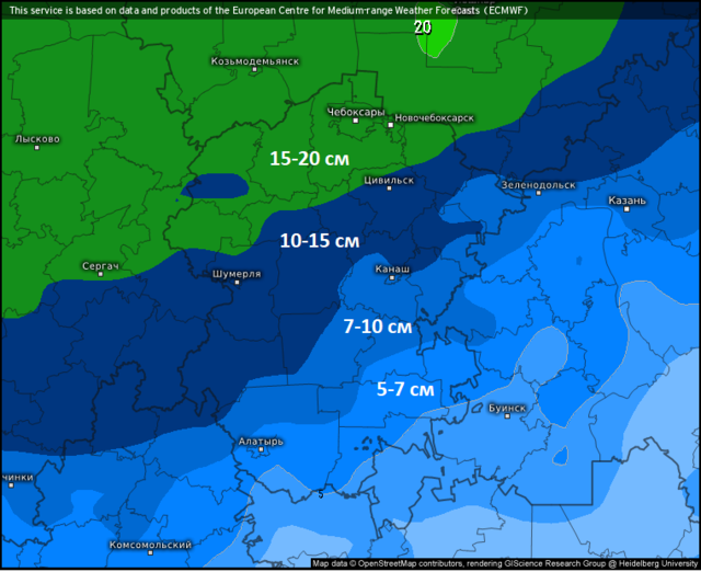 Республикӑн ҫурҫӗр-хӗвеланӑҫ районӗсенче, ҫав шутра Шупашкарта та, юр хулӑнӑшӗ 15-20 сантиметрпа танлашӗ.