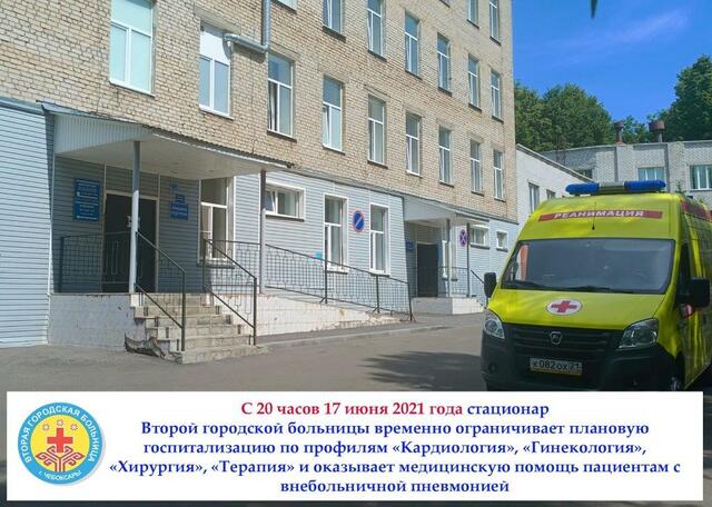 Шупашкарти 2-мӗш хула пульници каллех ковид-госпиталь пек ӗҫлеме пуҫланӑ. Кун пирки Роспотребнадзорӑн Чӑваш Енри управленийӗн пуҫлӑхӗн ҫумӗ Вера Головач пӗлтернӗ.