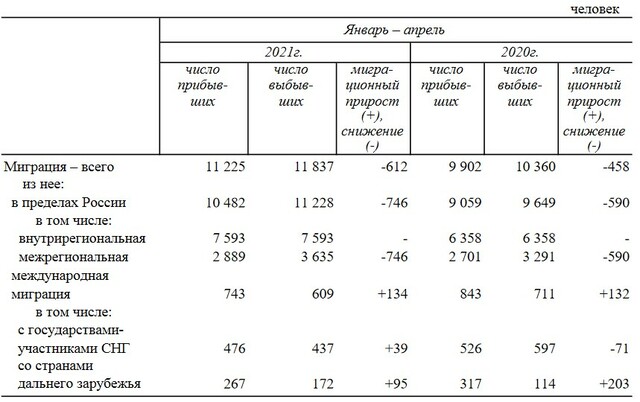 Кӑҫалхи тӑватӑ уйӑхра Чӑваш Енрен ҫӗршывӑн тӗрлӗ регионне 3 635 ҫын тухса кайнӑ, ытти ҫӗршыва — 609 (ҫав шутра СНГ ҫӗршывӗсене — 437). Ют регионсенчен 2 889 ҫын килсе ҫитнӗ, ытти ҫӗршывран — 743.