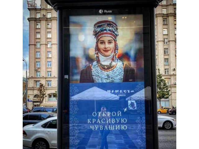 Ҫӗршывӑн тӗп хулинче, Мускавра, «Открой красивую Чувашию» (чӑв. Хитре Чӑваш Енпе паллаш) билбордсене курма пулать.