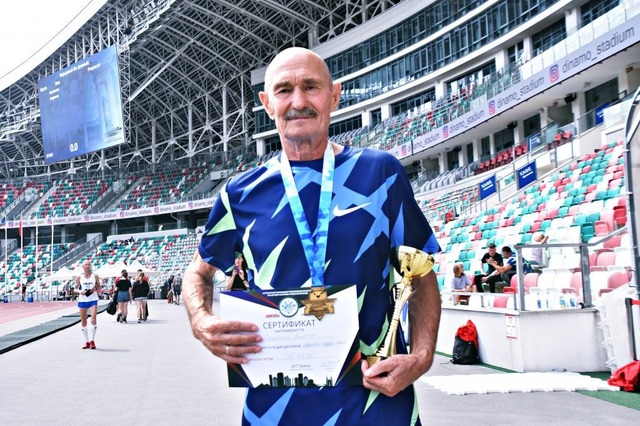 Виктор Семенов – ШӖМ ветеранӗ, вӑл 72 ҫулта. Отставкӑри милици полковникӗ ӑмӑртӑвӑн иккӗмӗш кунӗнче 5 пин километра чупса тӗнче рекордне ҫӗнетнӗ. Финиша 26 минут та 27,96 ҫеккунтра ҫитнӗ. Вӑл 70-74 ҫулсенчи спортсменсемпе тупӑшса ылтӑн медаль ҫӗнсе илнӗ.