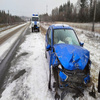 Авари Хакасирен тиев илсе килекен грузовик волительне пула пулнӑ. Водитель дистанцие пӑхӑнман, малта пыракан машина ҫине пырса кӗнӗ.
