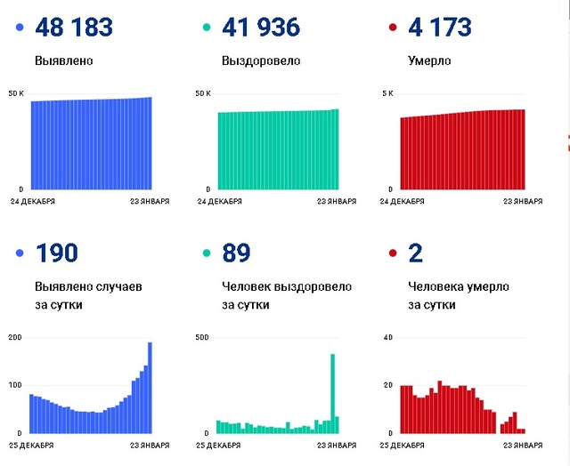 Юлашки талӑкра 190 ҫын инфекциленнине палӑртнӑ. Сӑмах май, пандеми пуҫланиччен кунашкал кӑтарту пулман. 89 ҫын сывалнӑ. Вилекенсен йышӗ чакнӑ: иртнӗ талӑкра 2 ҫын чире парӑнтарайман.