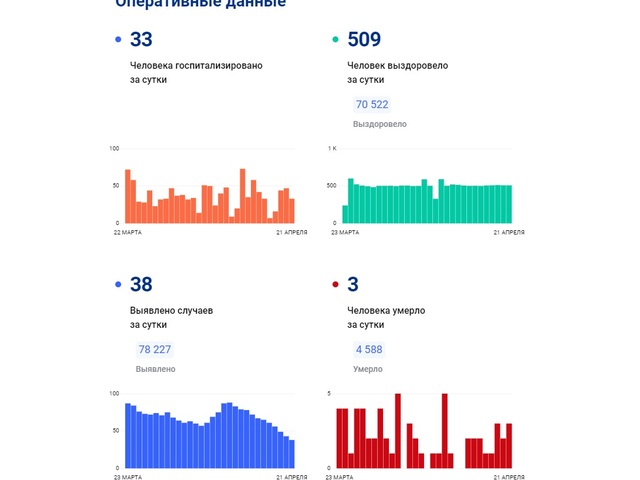 Пандеми пуҫланнӑранпа республикӑра 78,2 пин ытла ҫын чирленӗ, вӗсенчен 4588-шӗ вилнӗ.