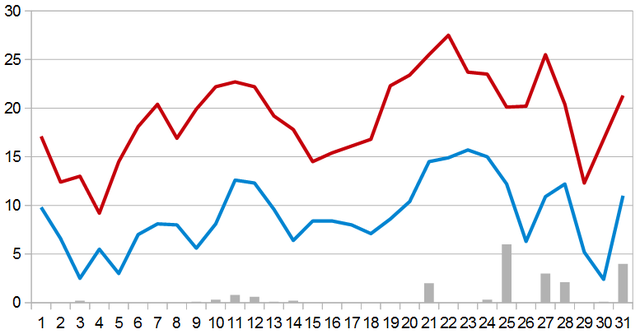 Уйӑх таршшӗпех тенӗ пек Вӑтам Азирен ӑшӑ та типӗ сывлӑш килӗ. Ҫавна май типӗ ҫанталӑк тӑрӗ. Виҫҫӗмӗш декада ҫеҫ ҫумӑрлӑ килме пултарӗ.