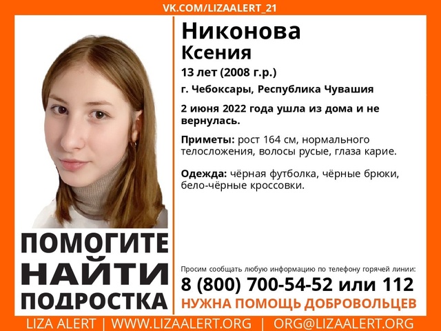 Шупашкарта пурӑнакан 13 ҫулхи хӗрача ҫӗртме уйӑхӗн 2-мӗшӗнче ҫухалнӑ.