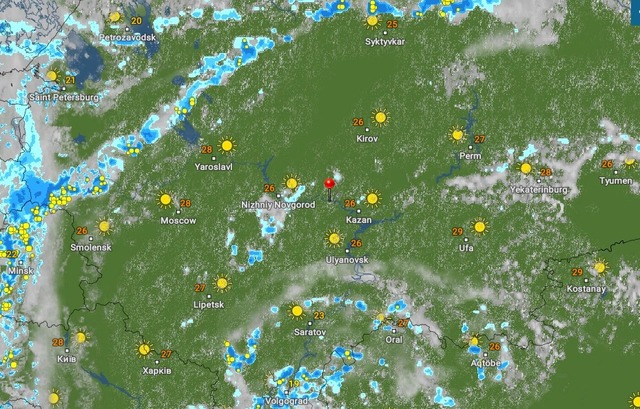 Пирӗн патра хуҫаланнӑ циклон Черноземье енне кайнӑ. Паян-ыран 24-29 градус ӑшӑ тӑрӗ. Ҫил лӑпкӑ вӗрӗ.