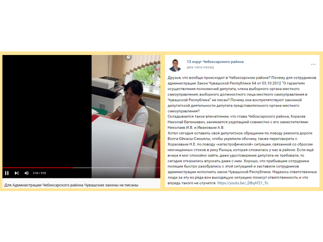 Депутат «Атӑл»-Ойкасси-Ҫӗньял» ҫула юсас, Йӑршу юханшывне таса мар шыв юхса выртнин ыйтӑвӗсемпе ҫыру ҫырнӑ иккен. Анчах ӑна пӗрремӗш хутра хуралҫӑ тытса чарнӑ. Кирлӗ ҫынсен ӗҫ пӳлӗмне кӗме депутат йӗрке хуралҫине чӗнсе илнӗ хыҫҫӑн вӑл унта пакунлӑ ҫынпа ҫеҫ кӗрейнӗ.