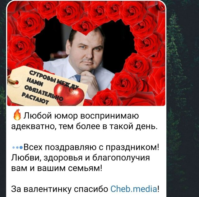 Шупашкар хула администрацийӗн пуҫлӑхӗ Денис Спирин хӑйӗн «валентинкипе» подписчикӗсемпе пайланнӑ ӗнтӗ. Вӑл кирек мӗнле шӳте те йӗркелле йышӑннине палӑртнӑ. Уйрӑмах паян – Ҫветтуй Валентин кунӗнче.