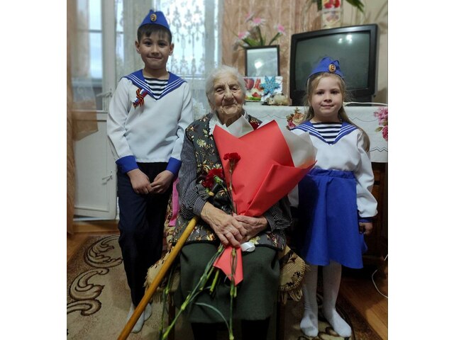 Следстви управленийӗн ӗҫченӗсем ветерана парне панӑ, ачасем вара сӑвӑсем вуланӑ.