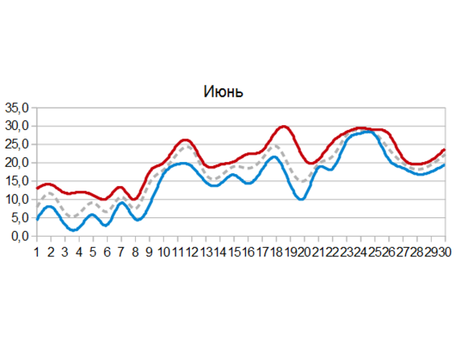 Анчах синоптиксен прогноз урӑхла: ҫав тери шӑрӑх тата типӗ пулмӗ. Ҫапах ку ҫӗртме уйӑхне пырса тивмест. Ун чухне сывлӑш температури вӑтамран 17,5 градус ытларах пулӗ. Ҫумӑр 64 миллиметртан сахалрах ҫӑвӗ.