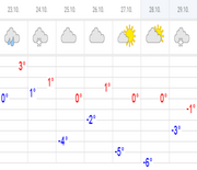 Кӗҫнерникун та ӑшӑ, ҫиллӗ ҫанталӑк тӑрӗ. Эрне вӗҫнелле сивӗтме пуҫлӗ. Эрнекун ҫумӑр ҫӑвӗ, канмалли кунсенче антициклон хуҫаланӗ, 2-7 градус ӑшӑ пулӗ. Шӑматкун уяр тӑрӗ.