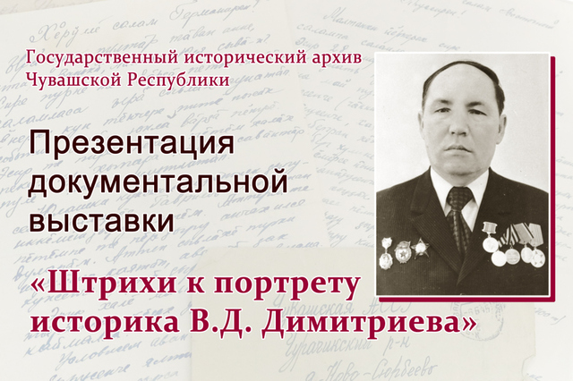 Кӑрлач уйӑхӗн 17-мӗшӗнче Чӑваш Республикин Патшалӑх истори архивӗнче «Штрихи к портрету историка В.Д. Димитриева» (чӑв. В.Д. Дмитриев историкӗн портречӗ) курав уҫӑлӗ. Аса илтерер: музей Уруков урамӗнчи 2а ҫуртра вырнаҫнӑ. Курав 14 сехетре уҫӑлӗ.