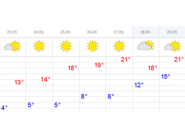 Ҫитес кунсенче ҫил лӑпланӗ. Ыран кӑнтӑрла уҫӑрах ҫанталӑк пулӗ-ха. Эрне варринче вара ӑшӑ килме тытӑнӗ, 20 градус таран ӑшӑтӗ. Ку –«карчӑк ӑшши». Канмалли кунсене термометр 25 градус таранах катартӗ, каҫхине 8-13 градус. Ҫил кӑнтӑр енчен ҫеккунтра 16-метр хӑвӑртлӑхпа вӗрӗ.