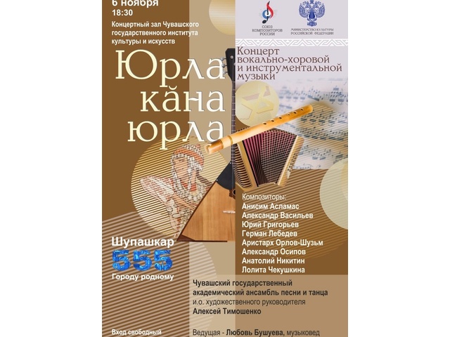 «Юрла кӑна, юрла» концерт программинче тӑван халӑхӑмӑр композиторӗсен хайлавӗсем пулӗҫ.