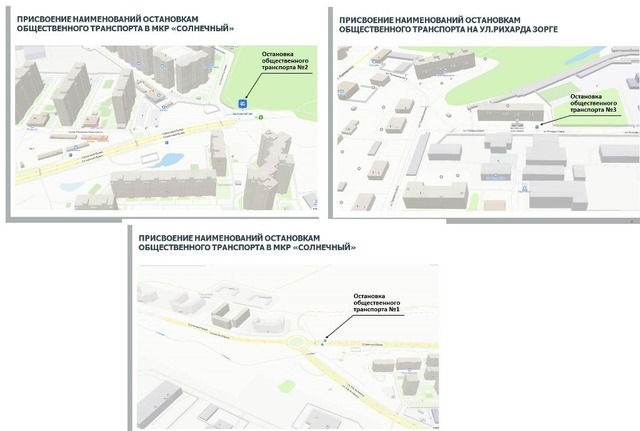 Хӗвеллӗ бульвар ҫывӑхӗнчи ҫул ҫаврӑнӑшӗ патӗнче чарӑнӑва «Хӗвеллӗ хӑтлӑх» ҫурт-йӗр комплексӗ» ят пама сӗнеҫҫӗ, Хӗвеллӗ бульварпа Сергей Бутяков урамӗ хӗресленекен вырӑнти общество транспорчӗн чарӑнӑвне «Бауман вӑрманӗ» ят парасшӑн. Рихард Зорге урамӗнчи чарӑнӑва «Библиотека» ятлӑ тӑвасшӑн. Халӗ вӑл «Куҫ курманнисен библиотеки» ятлӑ.
