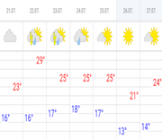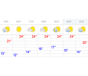 Шӑматкун кӑнтӑрла 20-25 градус ӑшӑ пулӗ. Вырсарникун пӗлӗтленӗ. Тунтикунран вара термометр 22-27 градус кӑтартма тытӑнӗ. Эрне варринче вара 30 градус шӑрӑх пулӗ.