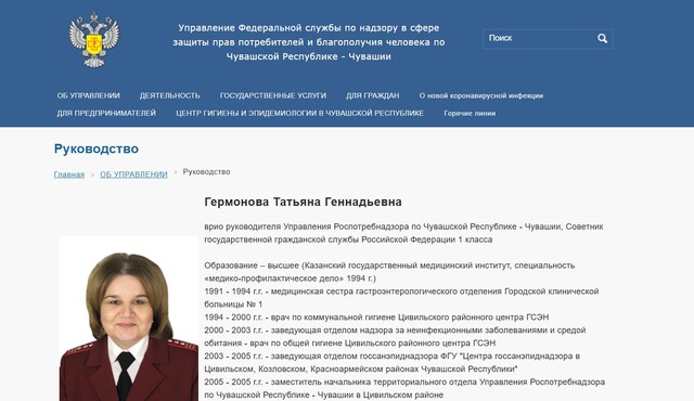 Роспотребнадзорӑн Чӑваш Енре управленийӗн пуҫлӑхӗ улшӑннӑ. Ку должноҫе вӑхӑтлӑха Татьяна Гермонова пурнӑҫлать.